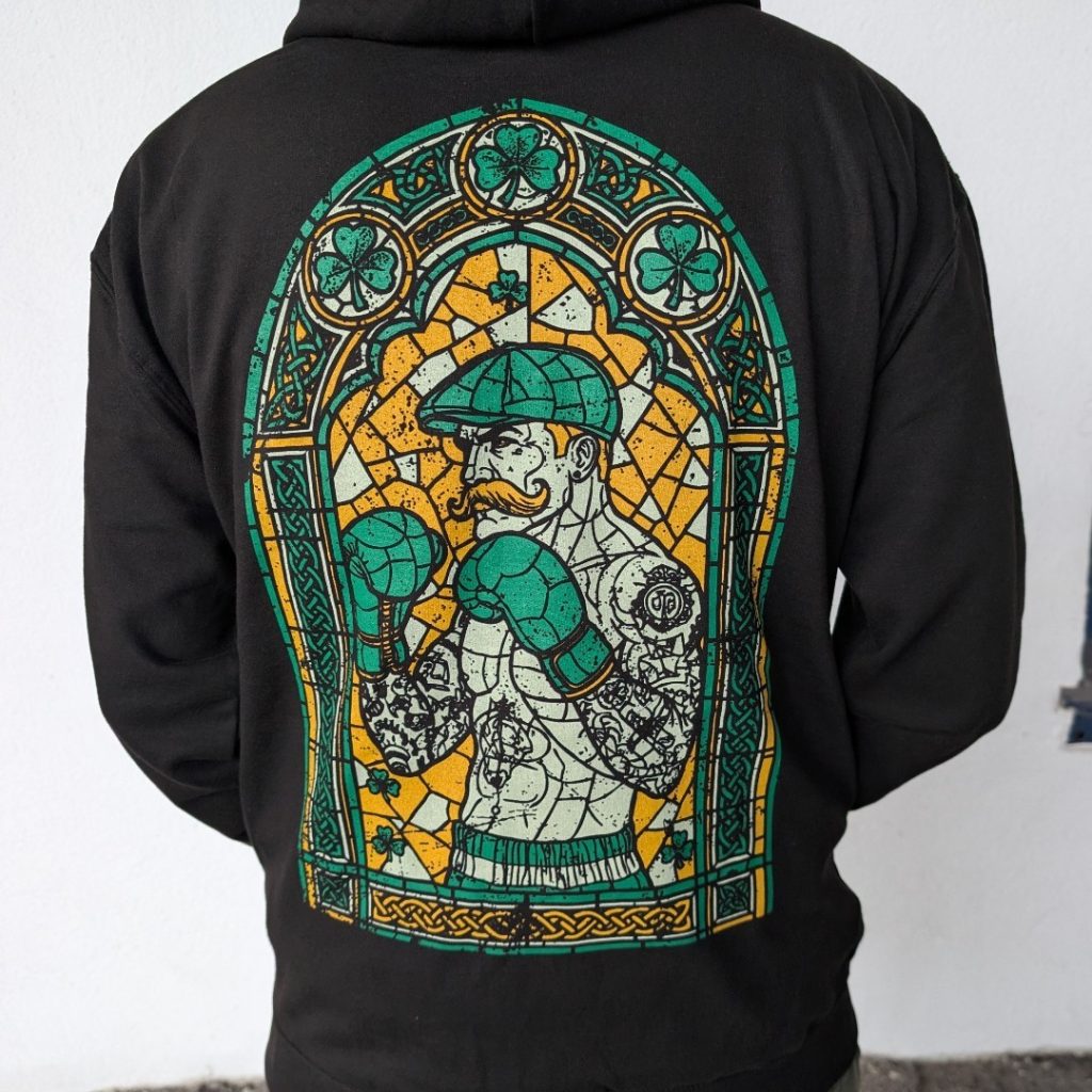 Das Motiv – nicht nur für den Kirchgänger. Glaubst du an den heiligen Boxer? Dann bist du hier genau richtig. Unser klassischer Boxer, der uns „The O’Reillys and the Paddyhats“ schon lange Zeit begleitet.